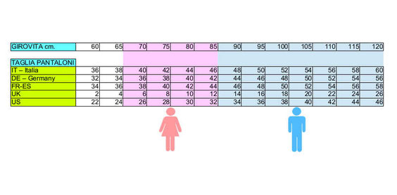 Dopo aver effettuato l'acquisto si prega di contattarci tramite mail (info@ottonelliarezzo.com) e di indicare il proprio girovita o taglia pantaloni. Per aiutarvi potete consultare la tabella a fondo pagina.